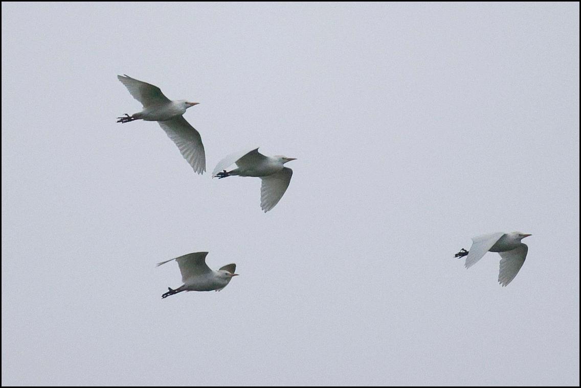 Saul Warth A female Marsh Harrier hunting the Warth, four Buzzards, a Kestrel, a Sparrowhawk, 28 Shelducks, 20 Coots, 66 Curlews, two Little Egrets, a Great Spotted Woodpecker, four Skylarks, four Chiffchaffs, 18 Pied Wagtails, a Grey Wagtail, a Meadow Pipit and 15 Goldfinches. Ten Little Egrets and a Cattle Egret in a field at Fretherne. (MK).