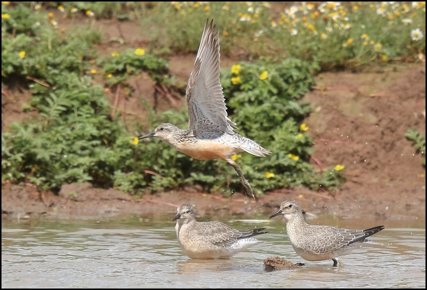 Frampton pools A Pied Flycatcher and two Spotted Flycatchers in the Gravel Wash. Also five Redstarts, three Whinchats, five Whitethroats, three Willow Warblers, 36 Chiffchaffs, 18 Blackcaps, a Yellow Wagtail, two Hobbies, 12 Swifts, 27 Robins, 100+ Sand Martins and a Grey Wagtail. (Nick Goatman).