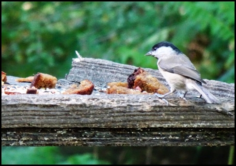 Forest of Dean Two Marsh Tits on the bird table at Cannop ponds. Also two Coal Tits and a Nuthatch. (Chris Keeling).