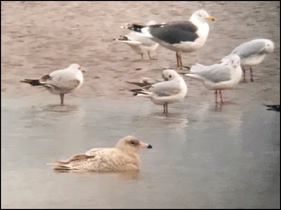 Newnham-on-Severn The GLAUCOUS GULL was roosting on Pimlico Sand at 4:30pm. (Lewis Thomson).