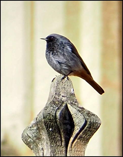 Gloucester The male BLACK REDSTART still at Gloucester Cathedral today. At Port Ham a Kingfisher, a Great Spotted Woodpecker, a Buzzard and a Jay. (Sara Baldwin).
