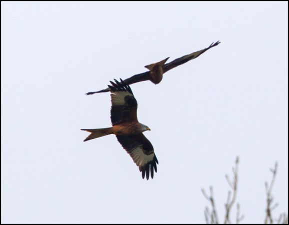 Winchcombe Two Red Kites over Langley Hill this afternoon. (Phil Cull).