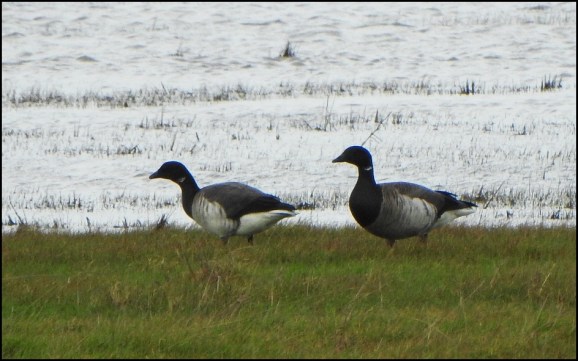 Frampton Two PALE-BELLIED BRENT GEESE on the flashes N of Splatt Bridge at 10am. At 10:20am they flew down onto the River Severn and out of view. (MK). Earlier a male MERLIN, a Peregrine, a Little Egret, 20+ Curlews and two Snipe. (Gordon Hodgson/MK).