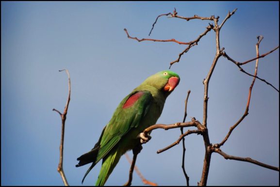 Cheltenham A female Alexandrine Parakeet in the garden in Bishop’s Cleeve today. (Andy Oliver).