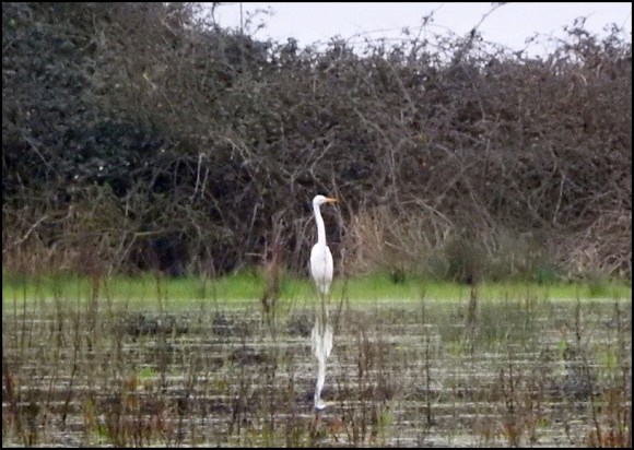 Saul Warth A GREAT WHITE EGRET and five Little Egrets at 6:20am. Also 40+ Curlews, a Bar-tailed Godwit and an Oystercatcher on the river. A pair of Tufted Ducks on Saul Lodge pond and a pair of Mandarins over. (MK).