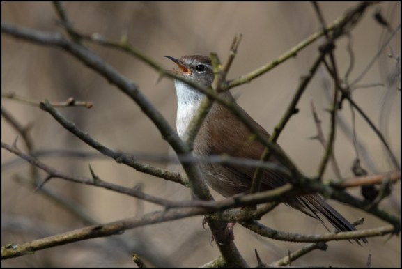 Coombe Hill Meadows Five Mute Swans, 25 Canada Geese, two Shelducks, ten Wigeon, 25 Teal, 15 Mallards, 20 Shovelers, seven Tufted Ducks, two Little Egrets, two Grey Herons, three Cormorants over, 15 Coots, two Avocets, two Oystercatchers, four Lapwings, three Black-tailed Godwits, five Curlews, 1+ Redshank, a Great Spotted Woodpecker drumming, 1+ Skylarks singing, a Pied Wagtail, a White Wagtail, five Chiffchaffs, 4+ Reed Buntings and a WHITETHROAT seen and heard singing. (Mike Smart).