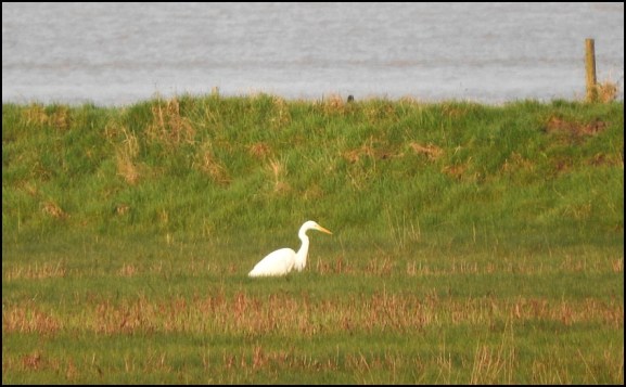 Coombe Hill Meadows A GREAT WHITE EGRET, two Avocets, a Ruff and a White Wagtail today. (David Benton).