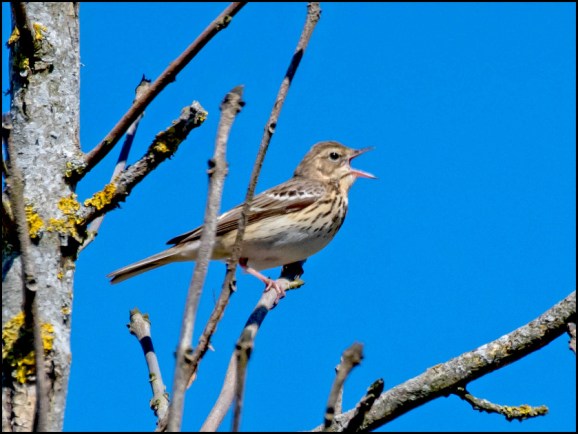 Prestbury Hill This afternoon a Tree Pipit, a Cuckoo, a Mistle Thrush and a Whitethroat. Also a Grass Snake and a Green Hairstreak. (David Benton).