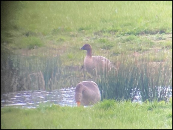 Saul Warth Early morning two Whinchats, a Wheatear, eight Whimbrels, a Bar-tailed Godwit, three Lesser Whitethroats, a Willow Warbler and a Yellow Wagtail. (Gordon Hodgson). At 10am a PINK-FOOTED GOOSE flew over Hock Ditch high up and calling heading S. It landed with three Canada Geese near Frampton breakwater. (MK/Martin McGill). After a short time it flew into the Goose Ground at WWT. (Roberta Goodall). Also Whimbrels increased to 22, a Common Sandpiper, a 2nd calendar-year MEDITERRANEAN GULL and another Yellow Wagtail. (MK/Martin McGill).