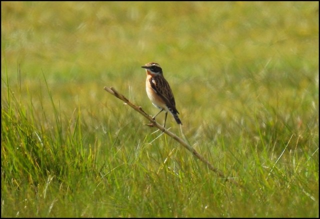 WWT Slimbridge At Mid Point, a male Whinchat, a male Greenland Wheatear, a Grasshopper Warbler reeling quietly, a Peregrine on the Dumbles, Avocets everywhere, 30 Black-tailed Godwits and a Little Ringed Plover on the Rushy. (MK).