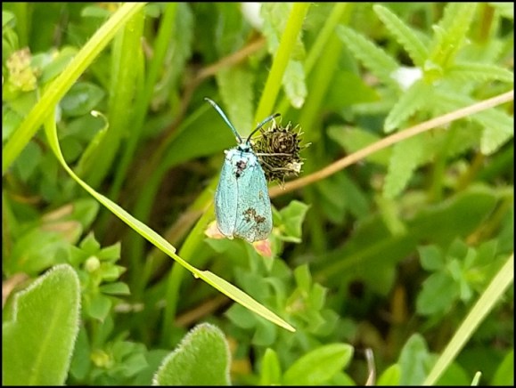 Cranham A Spotted Flycatcher in Buckholt Wood near the edge of the common. Nearby a Brown Argus and a Forester moth on the common. (Rob & Petra Crofton).