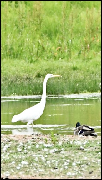 Coombe Hill Meadows Birds today included a GREAT WHITE EGRET, two Little Egrets, a Curlew, a Grey Heron, a Sedge Warbler, a Lapwing, an Avocet and a Cormorant. A Fox shot out of cover and caught and killed an adult Canada Goose. Also Four-Spotted Chaser, Emperor, Black-tailed Skimmers and Hairy Dragonfly. (Alan McIlquham).