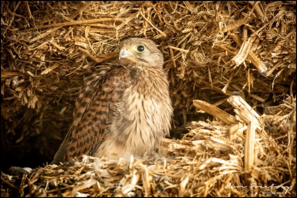 Arlingham A Kestrel family amongst hay bales today. (Marc Freebrey).