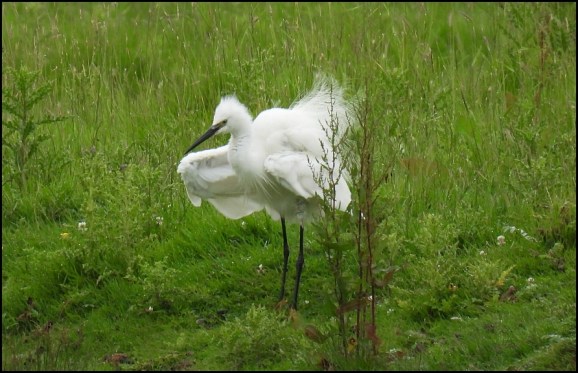 WWT Slimbridge The white-spotted BLUETHROAT was still at Middle Point this morning and sang showed very briefly early on. It continues to be very elusive and mornings seem to be the best chance, although there were no further reports today in strong winds. No sign of the Black-necked Grebe either. (Martin McGill). Four GARGANEYS from Zeiss hide. (Geoff Moyser). A Little Egret on Knott pool, a Grey Heron, a Green Sandpiper and a Little Ringed Plover on the Tack Piece and the male Ruff still on South Lake. (Paul Masters/MK).