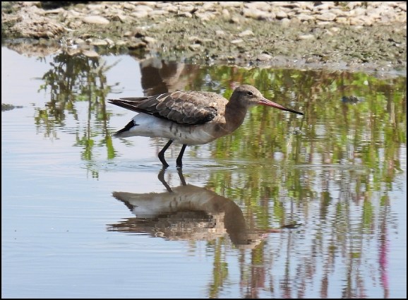 WWT Slimbridge A breeding plumaged Spotted Redshank on the Top New Piece. Also an adult Wood Sandpiper, a Green Sandpiper and 90 Black-tailed Godwits flew off from there. A Grasshopper Warbler still reeling and showing occasionally at Mid Point. On the Rushy four Green Sandpipers, an adult and two juvenile Little Ringed Plovers and a Black-tailed Godwit. (Slimbridge Sightings).