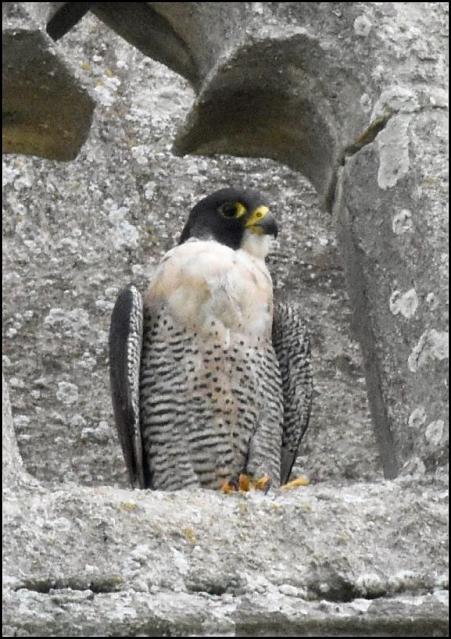 Slimbridge A Peregrine on the church again today. (Paul Sutton).
