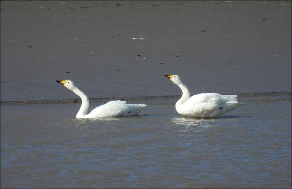 Epney Two Whooper Swans on the River Severn, opposite The Anchor Inn from 1pm until 6pm at least. (Paul Masters).