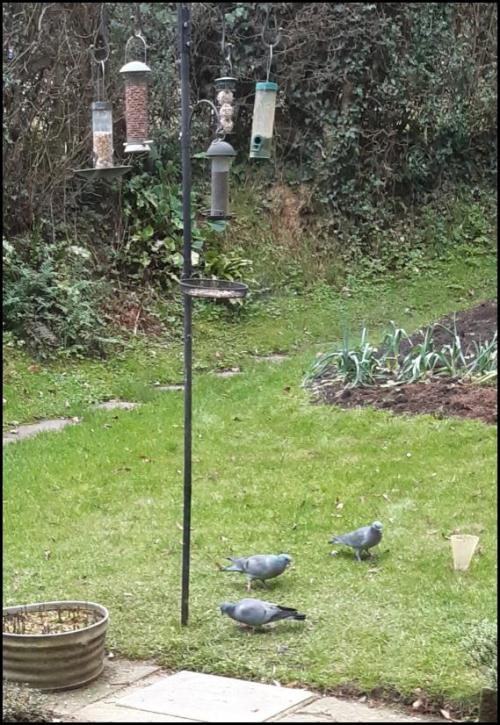 May Hill Three Stock Doves in the garden today. (Rob & Gillian Guest).
