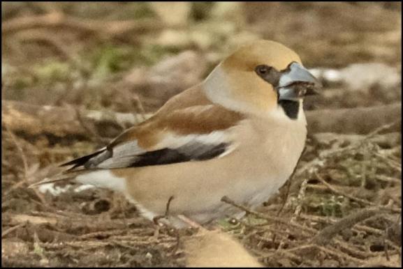 Forest of Dean A Hawfinch and c12 Bramblings at Parkend this morning. (Merv Carlyon/Wes Hayfield).