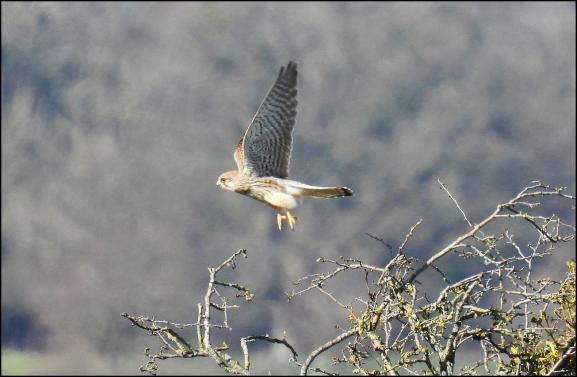 WWT Slimbridge A female Merlin with prey on the fence line at the N end of the Dumbles. (Ian Hull).