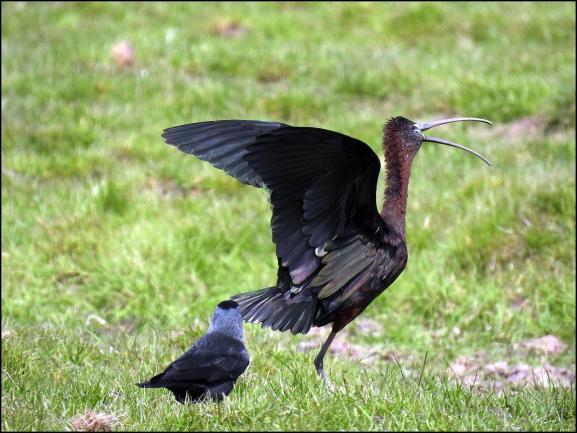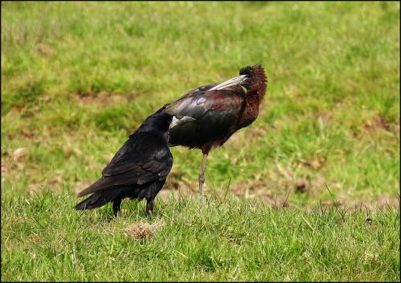Slimbridge At Shepherds Patch two GLOSSY IBISES opposite the Dutch barn next to the canal at SO 72740 04303 at 7:45am. They can be either side of the road. Please park in the free car park before the bridge SO 72895 04128. Do not block the farm gateways. (Jenny & Martin Green).