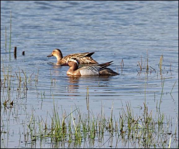 Coombe Hill Meadows A pair of Garganeys from Grundon hide this morning. Also two Curlews, two Little Ringed Plovers, two Avocets, two Redshanks, a Yellow Wagtail, a Common Sandpiper, a Great White Egret, three Little Egrets, two Oystercatchers, several Lapwings, three Linnets, 6+ Sedge Warblers and Whitethroats, and a Large Red Damselfly. (Sara Baldwin/Ian Hull).