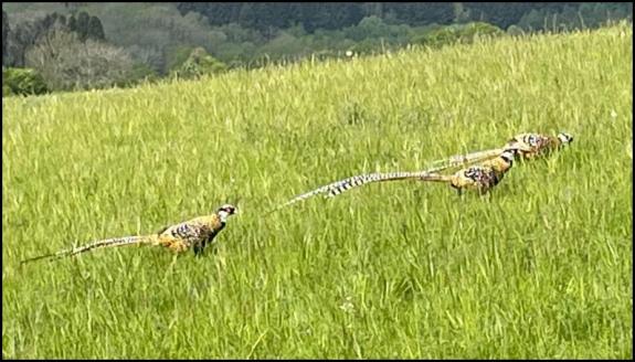 Roel Gate At midday three male Reeves’s Pheasants approaching Roel Gate from the W in fields on the left. (Jane Bailey/John Casswell).