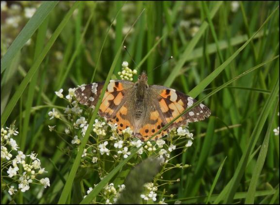 Longney This afternoon two Shelducks, 12 drake Mallards together, a Great Spotted Woodpecker, a Whitethroat, a Reed Warbler, a Chiffchaff, two Yellow Wagtails, two each of Swifts, Swallows and House Martins. Also a Painted Lady, a Red Admiral, a Small Copper, Green-veined Whites and a Thick-legged Flower Beetle. (MK).