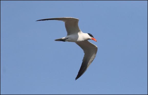 Epney The CASPIAN TERN on the mudbank of the River Severn S of the Anchor Inn from 8:13am until 8:52am when it flew inland. (Jeremy Holland). It was refound upstream flying towards Longney Crib at 10:10am and was there from 10:45am until 11:15am. (Jeremy Squire). In between it was at Rodley Sands at 10:30am at high tide. (David Smith). At 12:05pm it flew over over Epney heading SW. (Alex Carlisle). It was not seen then until it flew in to Epney at 8:10pm. (Julian Thomas). It flew off S over Framilode at 9:05pm then towards Saul Warth. (Jon Mercer/Mark Hobson). The TURTLE DOVE for its 4th day on wires and in trees around the Anchor Inn from 9:30am. (Jeremy Holland/David Hughes). Please park sensibly by the entrance opposite the seawall without blocking access and not in the pub unless you are using it. Also nine Common Sandpipers (Paul Masters) and a Harbour Porpoise swam down river at 2:20pm. (Duerden Cormack).