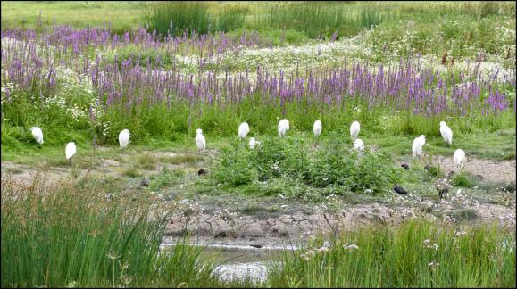 Coombe Hill Meadows 14 Little Egrets, five Grey Herons, two Snipe, seven Green Sandpipers, a Little Ringed Plover, a male Bullfinch, a Reed Warbler, a Sedge Warbler, six Pied Wagtails and five Yellow Wagtails. (Alan McIlquham/Paul Sutton).