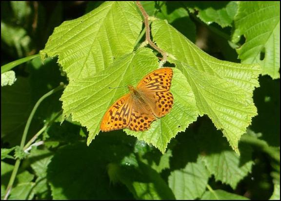 Lineover Woods Birds included Green Woodpecker, Great Spotted Woodpecker, Blackcaps, Goldcrests, a pair of Bullfinches, Goldfinches and two Spotted Flycatchers. Also Silver-washed Fritillaries. SO 98867 18823. (Jon Dexter).