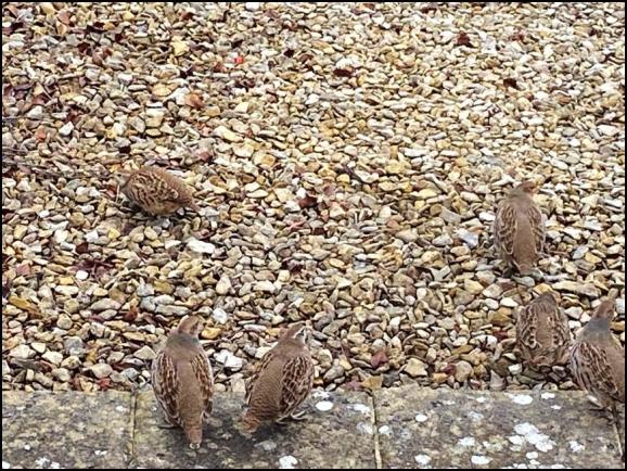 Chedworth Seven Grey Partridges in the garden this afternoon. (Chris Berens).