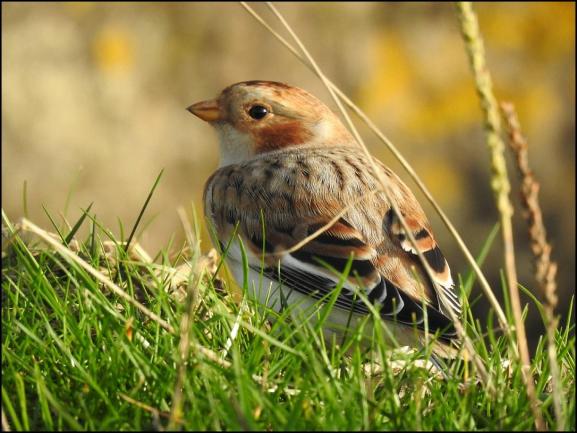 Lydney A SNOW BUNTING on the rocks along the foreshore at New Grounds again this afternoon. W3W bathtubs.nylon.carefully. (Owen Follis).