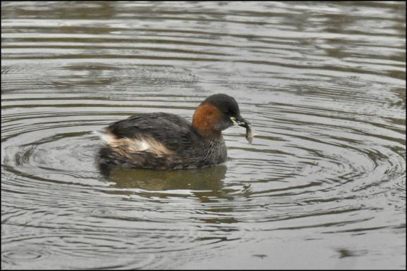 WWT Slimbridge On South Lake the BITTERN again, a Kingfisher flew past Martin Smith hide. A Snow Goose with Canada Geese on the tack piece, the Ross’s Goose and Bar-headed Goose with Barnacle Geese and 12 Common Cranes on the Dumbles. A Little Grebe catching fish at the Zeiss hide. (Paul Sutton).