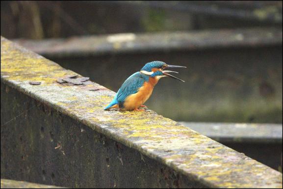 Hucclecote A Kingfisher perched on concrete blocks lining the Wootton Brook bank by the Porchester Road culvert today. (Mrs H Smith). The last record was over 30 years ago. (Harold Smith).