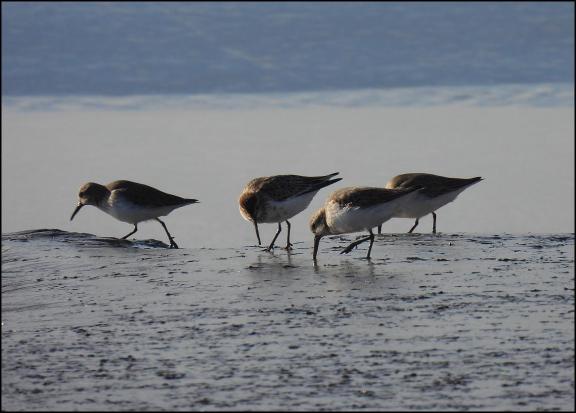 Saul Warth Early afternoon, waders very close 322+ Dunlins, nine Grey Plovers, eight Redshanks, six Curlews, a Little Egret, two Meadow Pipits, a Rock Pipit, two Grey Wagtails, 20+ Chaffinches, a pair of Stonechats, a male Reed Bunting and two Ravens. (MK).