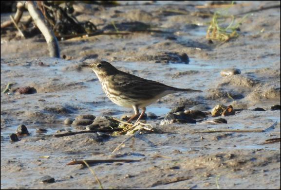 Saul Warth The SPOONBILL flew past Saul Warth at 1:20pm, turned over Awre and headed down the W bank towards Sharpness. Also this afternoon at low tide a Rock Pipit at Hock Cliff, 200+ Wigeon and 20+ Pintails flew S, a Buzzard, a Sparrowhawk, eight Fieldfares, a Mistle Thrush, three Meadow Pipits and a Moorhen in Hock Ditch. (MK).