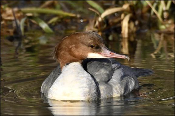 Ebley The female Goosander still just W of Ebley Mill today. (Paul Sutton).