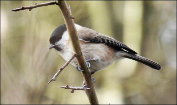Highnam Woods 1+ Marsh Tit on feeders next to the hide (closed) this afternoon. (MK).