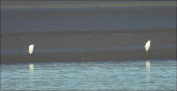Quedgeley Two Great White Egrets heading E over the garden at 7:40pm today, a garden tick. (Steve Pullen).
