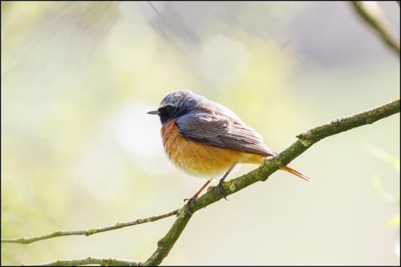 Chedworth A male Redstart on the lawn briefly this morning in Field Road. (Chris Berens).
