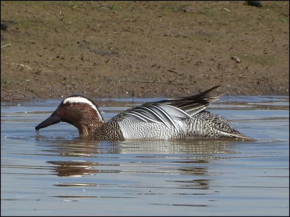 WWT Slimbridge A WHITE STORK circled over the Rushy at 2:10pm and headed NE towards Frampton. (Slimbridge Sightings). A GARGANEY from the Estuary Tower on the Tack Piece. (Esther Rumsey). From Middle Point this morning two Sanderlings with a large Ringed Plover and Dunlin flock on the Dumbles. Three Grey Plovers, 12 Bar-tailed Godwits and four Great Crested Grebes on the river. (Jeremy Holland). The female Red Crested Pochard still on South Lake. (Alan McIlquham).