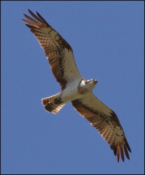 Berkeley An OSPREY over the house at 1:15pm heading towards Dursley from the River Severn. (Clare Glanville). Later seen from the western edge of Stinchcombe Hill over the Vale at 1:45pm being mobbed by Herring and Lesser Black-backed Gulls then drifted N. (James Robinson).