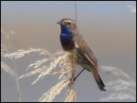 WWT Slimbridge The male WHITE-SPOTTED BLUETHROAT still at Middle Point, singing and showing well on and off this morning. The BLACK-WINGED STILT still on South Lake. (Ken Hurcombe/Terry Grant).