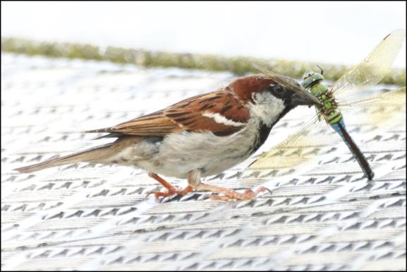 Frampton pools The adult Yellow-legged Gull on the pontoon by the Sailing Club being mobbed by Common Terns. House Sparrows taking dragonflies and damselflies there. (Nigel Young/Ken Hurcombe).