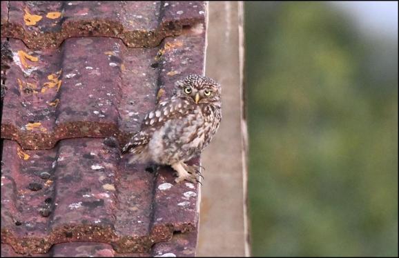 Frocester Late evening a Little Owl sat on a garage roof, just before the railway bridge. (Paul Sutton).
