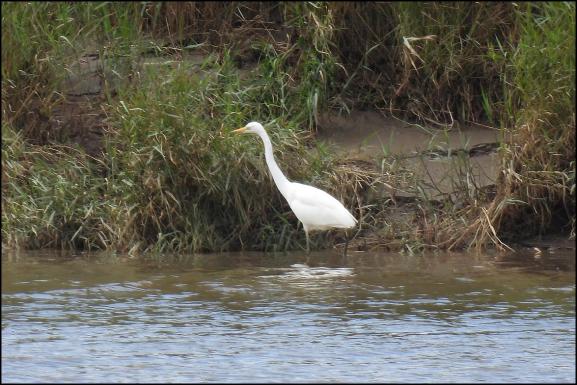 Epney A Great White Egret and a Little Egret S of the Anchor Inn at 2:40pm. (MK).