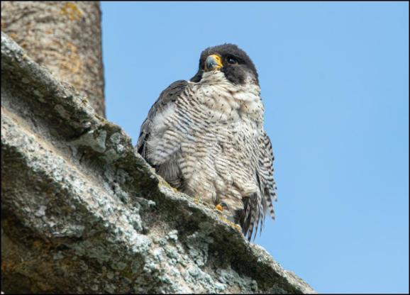 Slimbridge A Peregrine on the E side of St John’s Church tower for at least an hour today. (Chris Newton).