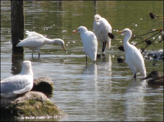 WWT Slimbridge A juvenile WOOD SANDPIPER on the Rushy this morning. (Terry Stevenson). Four SPOONBILLS this morning feeding in the tidal pools off Middle Point. (Neil Smart/Geoff Bryant). Six CATTLE EGRETS on South Lake. (Geoff Bryant).