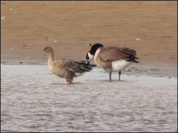 Epney The Pink-footed Goose, of unknown origin, again on the sands S of the Anchor Inn again until 9:45am at least with 170+ Canada Geese. (Geoff Moyser/Steve Pullen/MK).